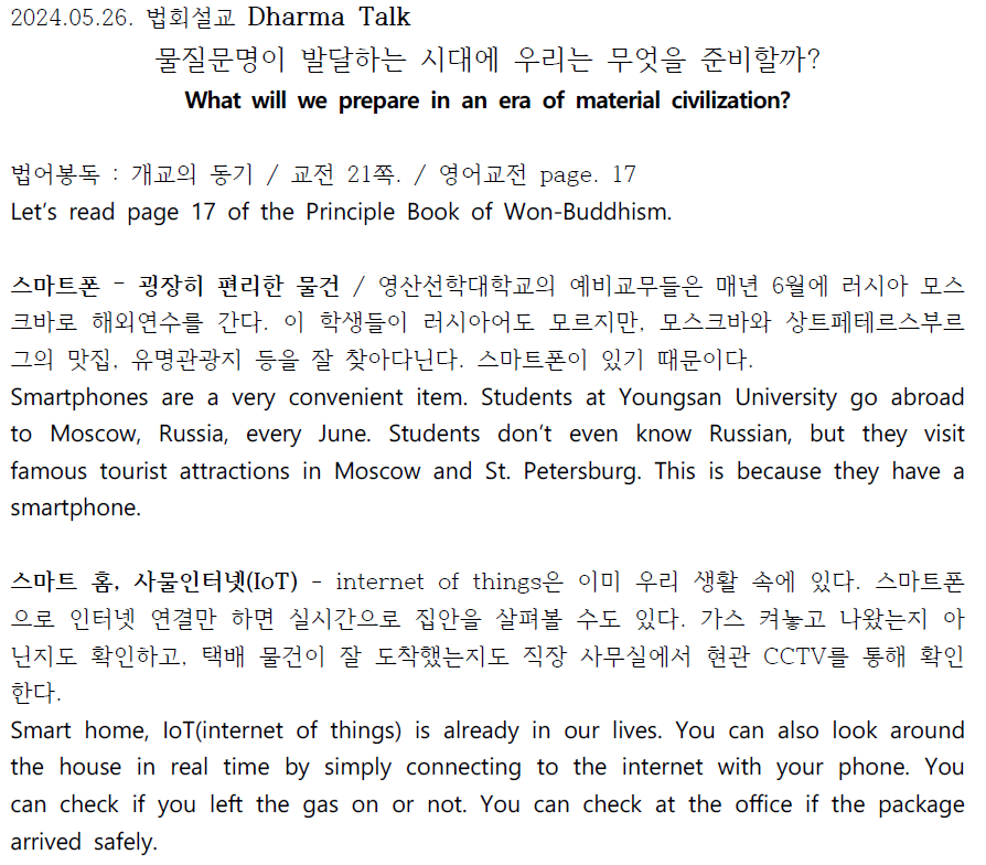원불교 베트남 호치민교당 주임교무님이신 구덕경 교무님의 설교 자료입니다. 공부에 참고하시기 바랍니다.