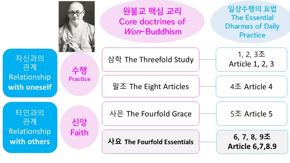 이번 포스트에서는 원불교 베트남 호치민교당의 주임교무님이신 덕타원 구덕경 교무님의 일상 수행의 요법 6조에 관한 자료를 공유해 드립니다. 공부에 참고하시기 바랍니다.